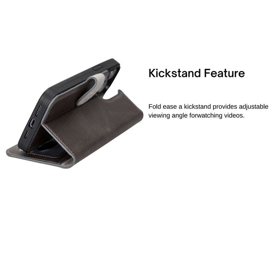 iPhone 13 (6.1") Leather MagSafe Stand Wallet Case RFID Protection - Black Leopard